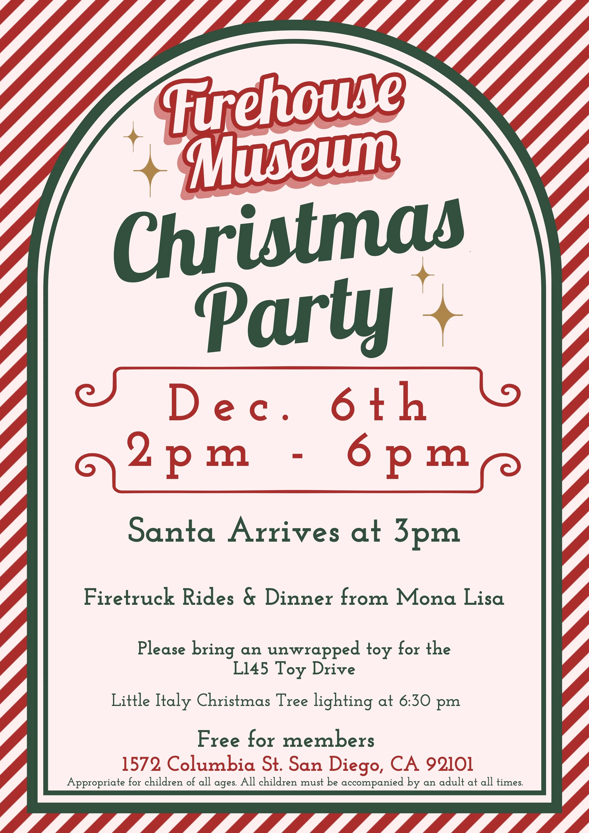 The San Diego Firehouse Museum is a non-profit and all donations are tax deductible. Thanks for supporting the Museum.